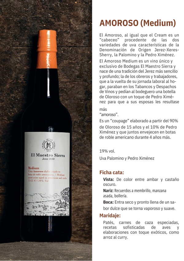 El Amoroso Medium es un vino único y exclusivo de Bodegas El Maestro Sierra y nace de