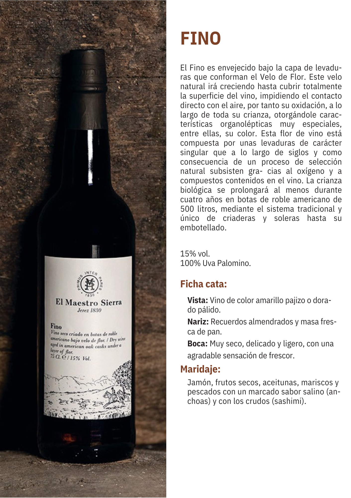 -Maridaje: Jamón, frutos secos, aceitunas, mariscos y pescados con un marcado sabor salino (Anchoas) y con los crudos (Sashimi).